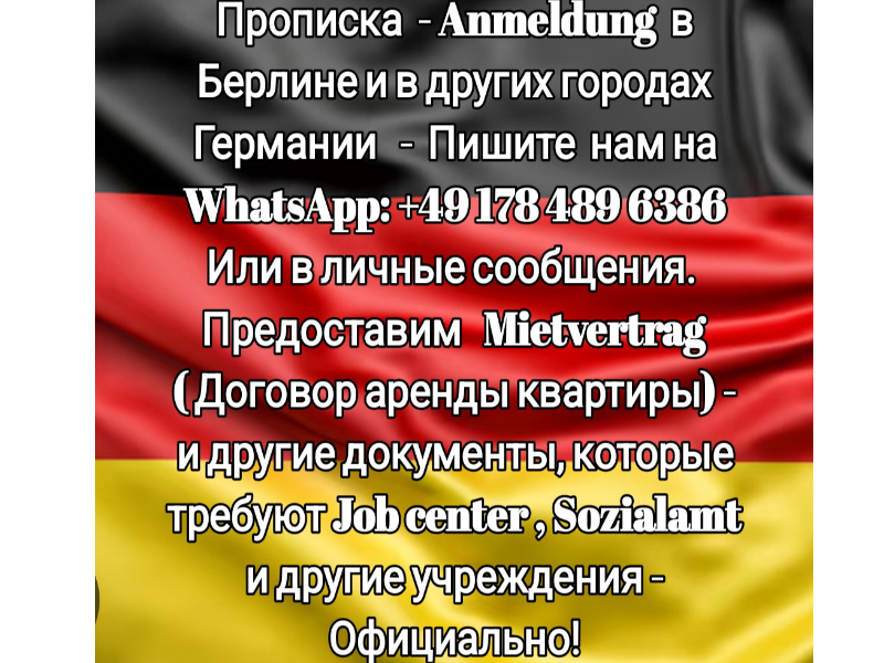 Прописка в Берлине и в других городах Германии. Пишите нам на WhatsApp или в личные сообщения.